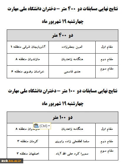 نتایج نهایی مسابقات دو 400 متر و 100 متر 2