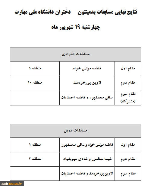 نتایج نهایی مسابقات بدمینتون 2