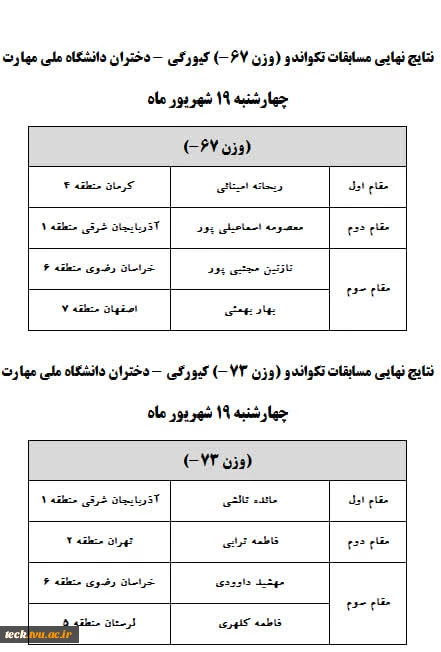 نتیجه مسابقات نهایی تکواند بخش اول 2