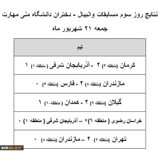نتایج مسابقات والیبال روز جمعه 21 شهریور 2