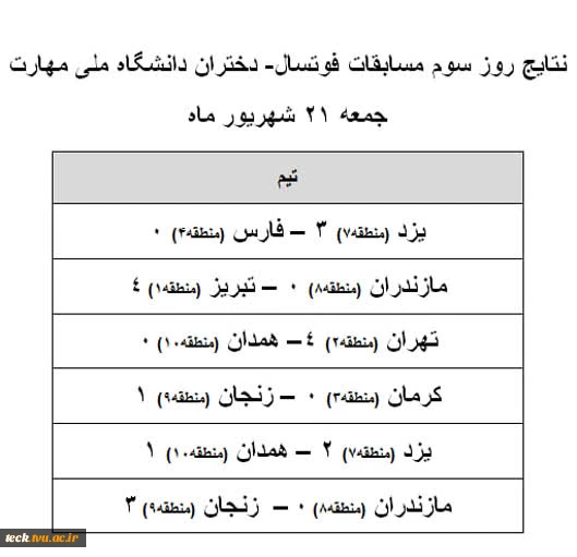 نتایج روز سوم (روز جمعه ) مسابقات فوتسال 2