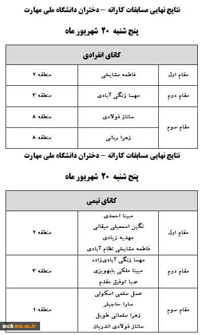 نتایچ نهایی کاراته کاتای تیمی و انفرادی 2