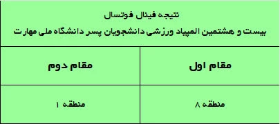 امتیاز دهید : نتیجه فینال فوتسال "بیست و هشتمین المپیاد ورزشی دانشجویان پسر دانشگاه ملی مهارت" 2 یکشنبه 30 شهریور 1404 ساعت 13:38